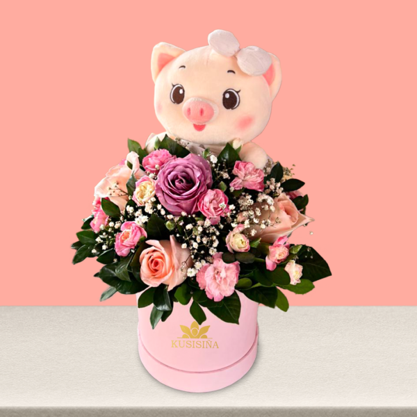 Caja de flores con peluche