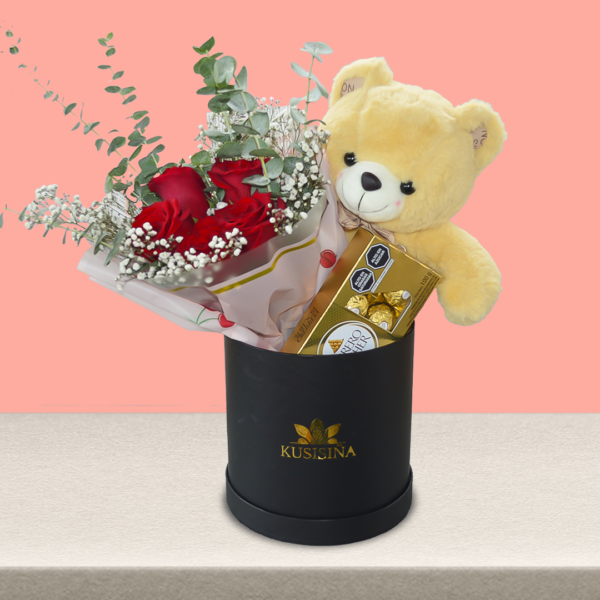 Hermoso Gift Box que contiene un peluche de Naruto, Pringles, una caja Ferrero Rocher de 4ud, una bebida Red Bull, un chocolate coreano PEPERO, dedicatoria y globo (GLOBO ÚNICO CON MENSAJE: FELIZ DÍA PAPÁ); todo dentro de una caja de madera artesanal con una pizarrita personalizable.